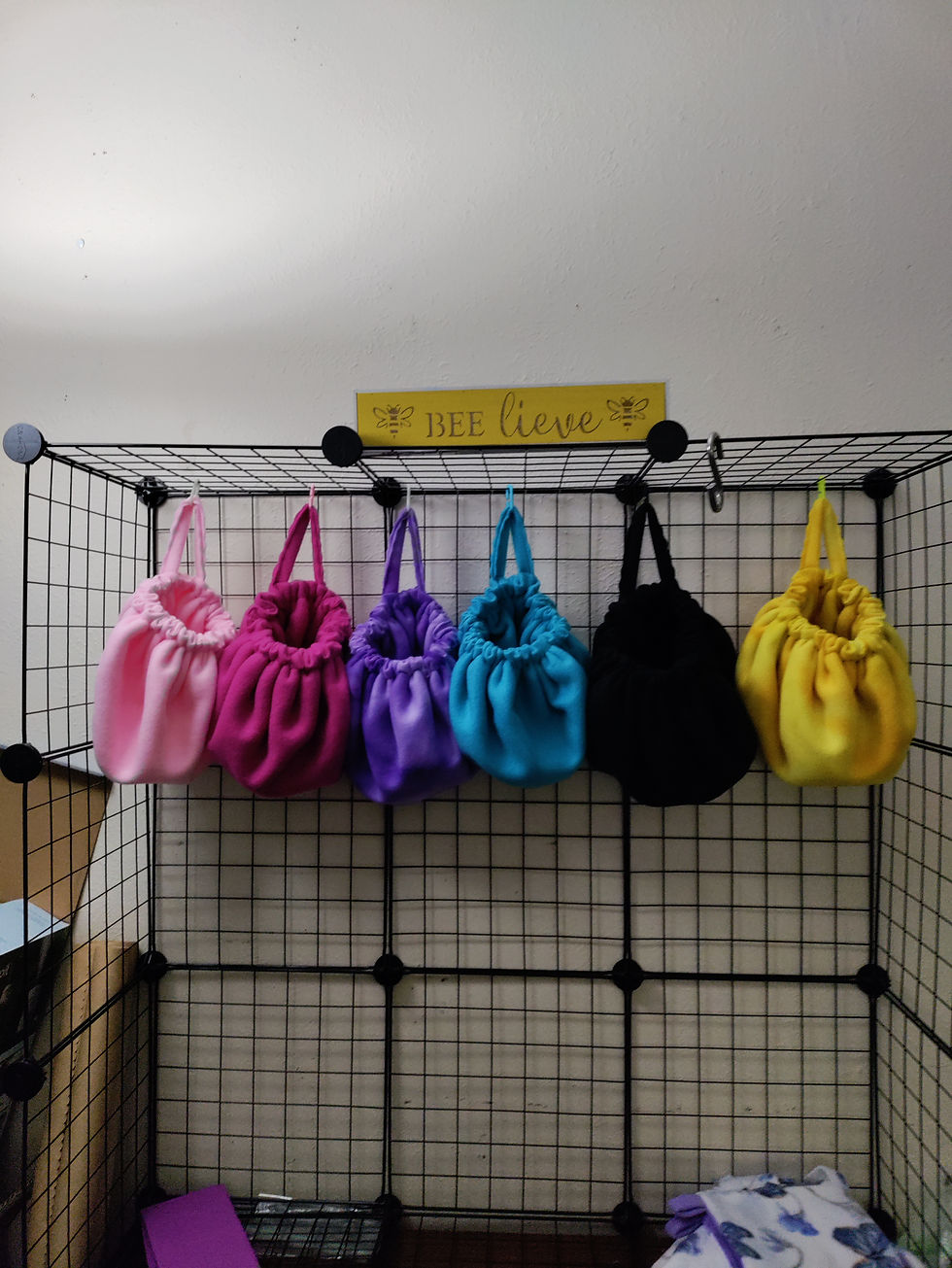 All items are handmade in the USA with your choice of anti-pill fleece or cotton exteriors. The interior is anti pill fleece with hidden seams reinforced with zigzag stitching to ensure the highest quality for the safety of your sugar glider. Please note it is your responsibility to frequently examine your cage set items for any holes, pulled stitches, or excessive wear as it will affect the safety and the structural integrity of your cage pieces. See the Sugar glider care section of the FAQ for more information on how to care for your cage pieces.